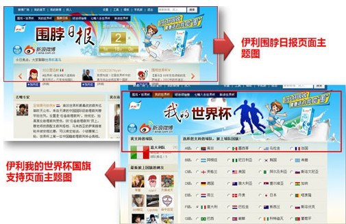 世界杯期間,伊利營養(yǎng)舒化奶與新浪微博深度合作,在“我的世界杯”模塊中和友可以披上自己支持球隊的國旗,在新浪上微博為球隊吶喊助威,結(jié)合伊利舒化產(chǎn)品特點,與世界杯足球賽流行元素相結(jié)合,借此打響品牌知名度,讓球迷產(chǎn)生記憶度。在新浪微博的世界杯專區(qū),已經(jīng)有兩百萬人披上了世界杯球隊的國旗,為球隊助威,相關(guān)的博文也已經(jīng)突破了3226萬條和時,通過對微博粉絲的比較,選出粉絲數(shù)量最多的網(wǎng)友,成為球迷領(lǐng)袖。
