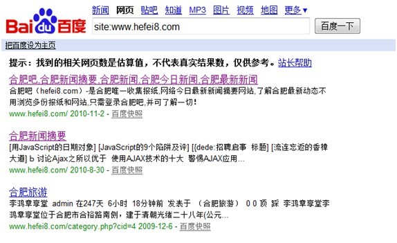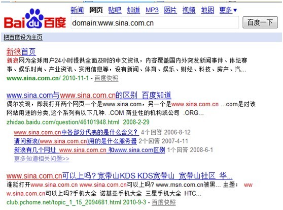 site指令 容易理解,是檢查網(wǎng)站被搜索友情抓取的頁面,很多做優(yōu)化的人非常重視這個site結(jié)果,在前段時間百度公布的搜索引擎優(yōu)化指南中說到baidu中的site結(jié)果僅供參考,非準(zhǔn)確的結(jié)果。經(jīng)常用site的人也會發(fā)現(xiàn),你往收錄也的后面點(diǎn)擊的時候,會發(fā)現(xiàn)收錄總數(shù)在不斷增加會減少。所以此條指令雖然常用,但是不能作為唯一標(biāo)準(zhǔn)。