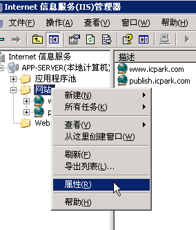3. 打開Internet信息服務(IIS)管理器,右擊“網(wǎng)站”-》“屬性”,選擇“服務”。在“HTTP壓縮”框中選中“壓縮應用程序文件”和“壓縮靜態(tài)文件”,按需要設置“臨時目錄”和“臨時目錄的最大限制”;