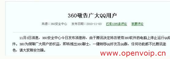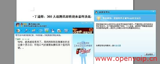 11月3日下午6時許,qq用戶的桌面彈出“致廣大qq用戶的一封信”!內(nèi)容大意為將在裝有360軟件的電腦上停止運行QQ軟件。(剛寫到這的時候,我正通過qq和好友聊天,發(fā)現(xiàn)qq突然掉線,蹦出一個窗口“緊急通知:惡意軟件正破壞QQ安全運行”。)