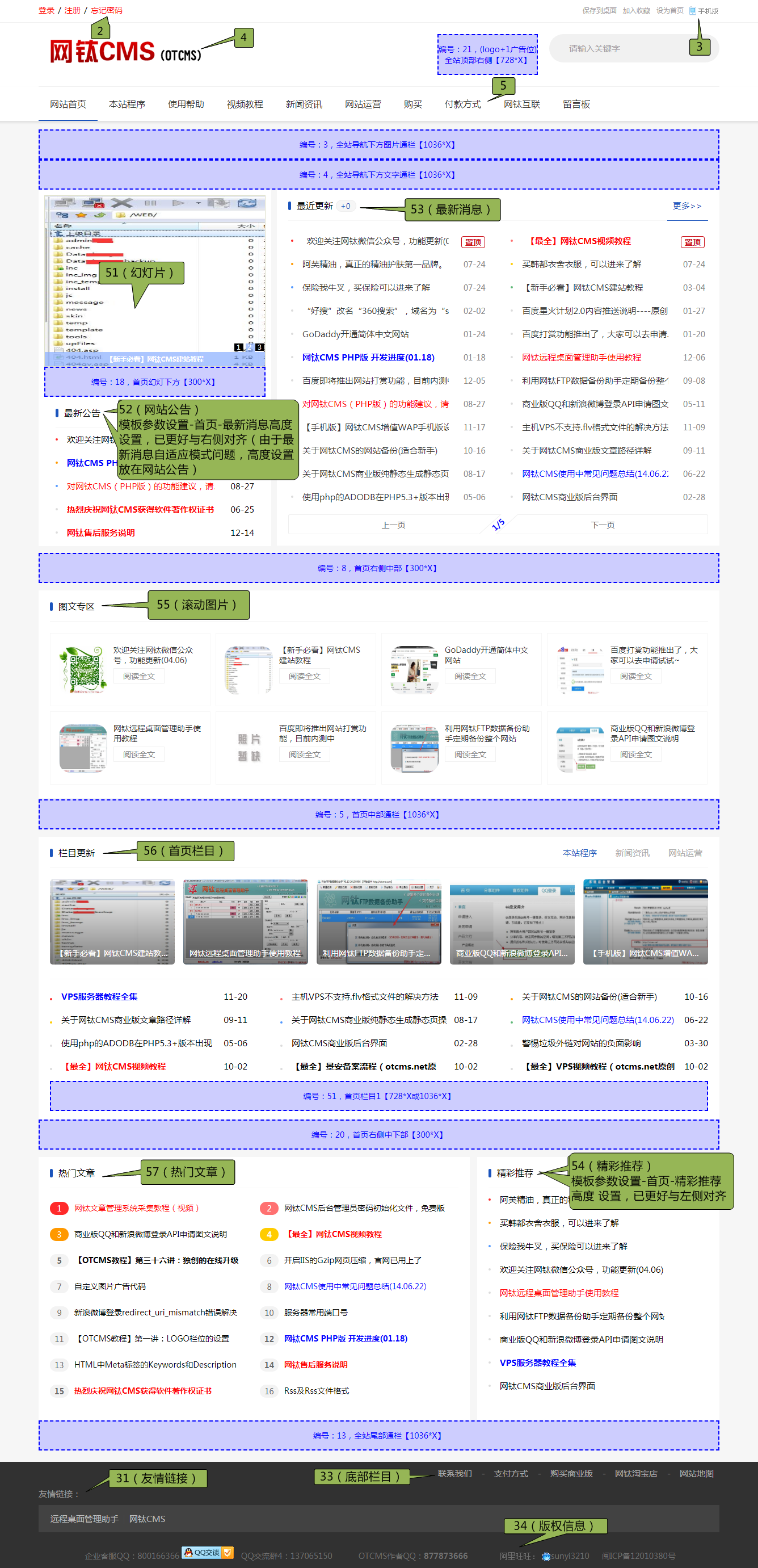 57、1.【模板管理】-【模板參數(shù)設(shè)置】-[首頁(yè)布局]-首頁(yè)熱門(mén)文章 一系列設(shè)置,如開(kāi)關(guān)、名稱、圖文數(shù)、文字文章數(shù)等。